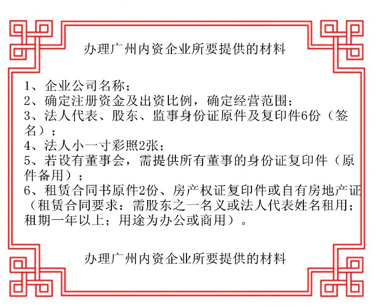 四、办理广州内资企业所要提供的资料